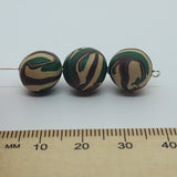 12mm Round Fimo Beads (10) - Camouflage Green/Brown