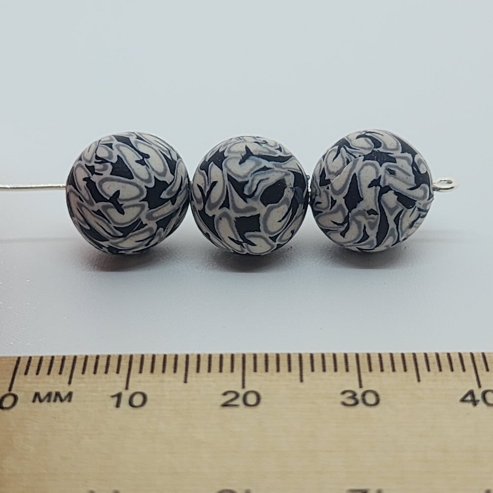 12mm Round Fimo Beads (10) - Hoof Print on Black