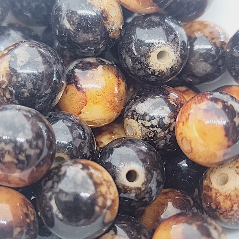 $11.25 AUDUnit price /Unavailable12mm Round (25) - Black Bubble Glaze over Tan - Vintage Lucite Beads