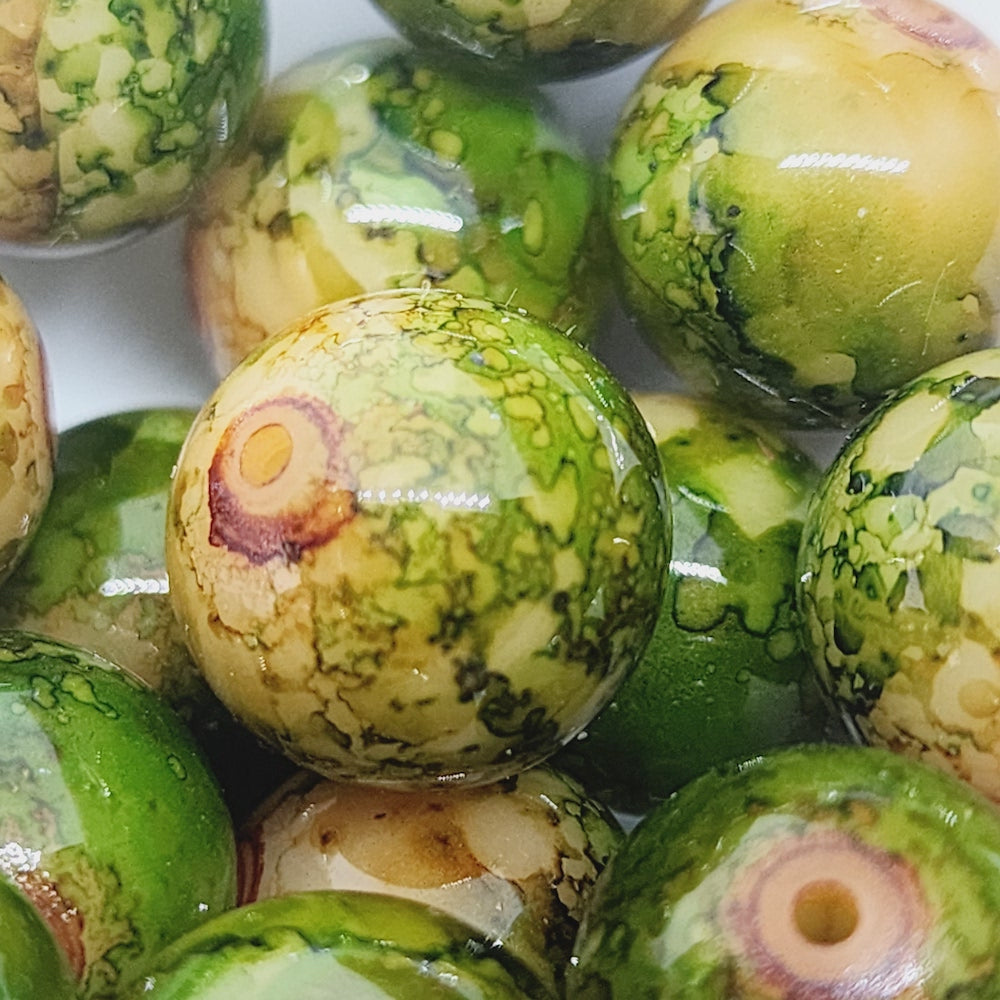 $11.25 AUDUnit price /Unavailable12mm Round (25) - Dark Green Bubble Glaze over Green - Vintage Lucite Beads