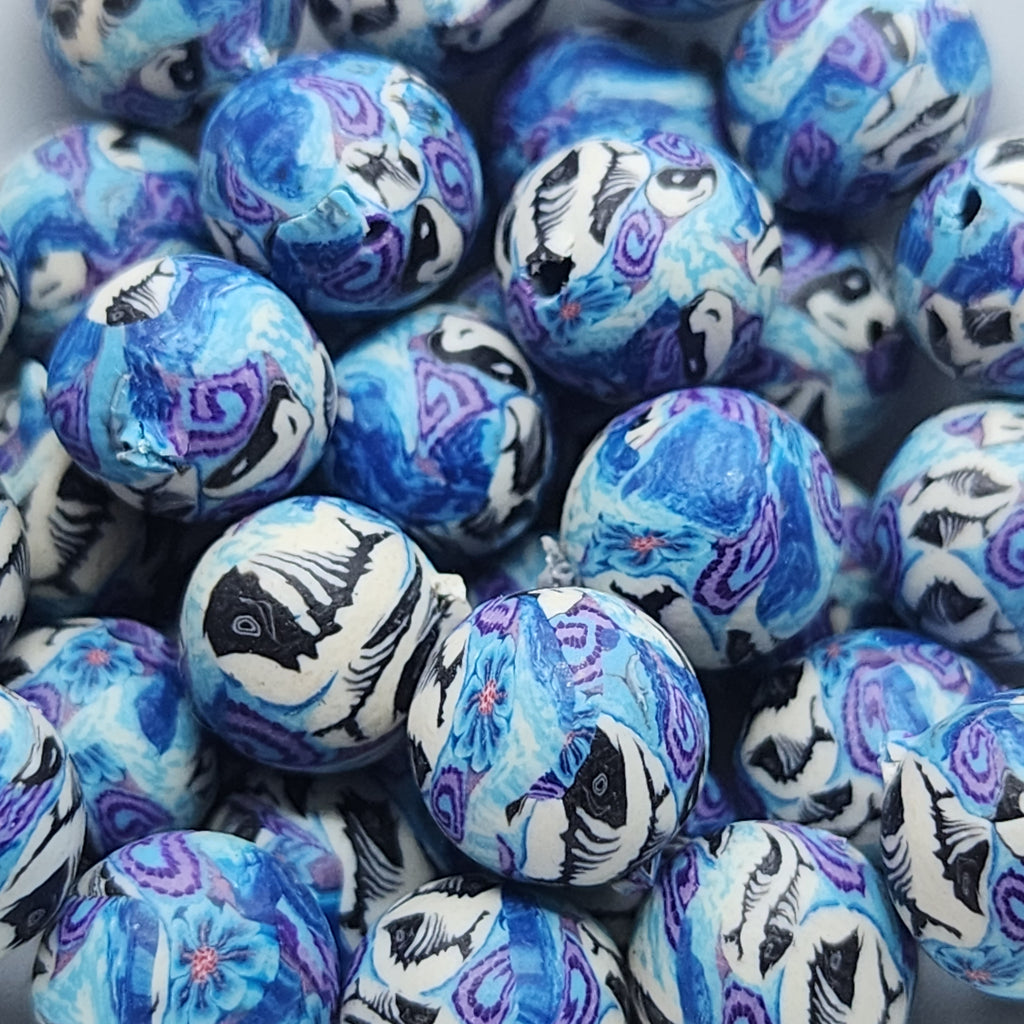$13.50 AUDUnit price /Unavailable8mm Round Fimo Beads (10) - Fish Bones w. Yin/Yang Dolphin & Spirals