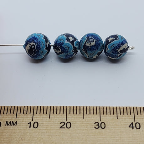 $13.50 AUDUnit price /Unavailable8mm Round Fimo Beads (10) - Moon Face w. Leaping Dolphins & Stars