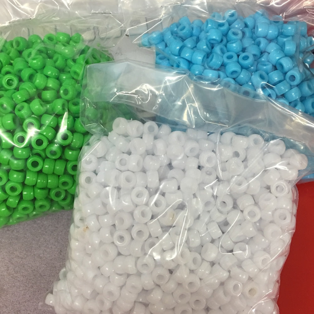 - 1,000 x Green beads + 1,000 x White beads + 1,000 x Blue Beads = 3,000 Beads