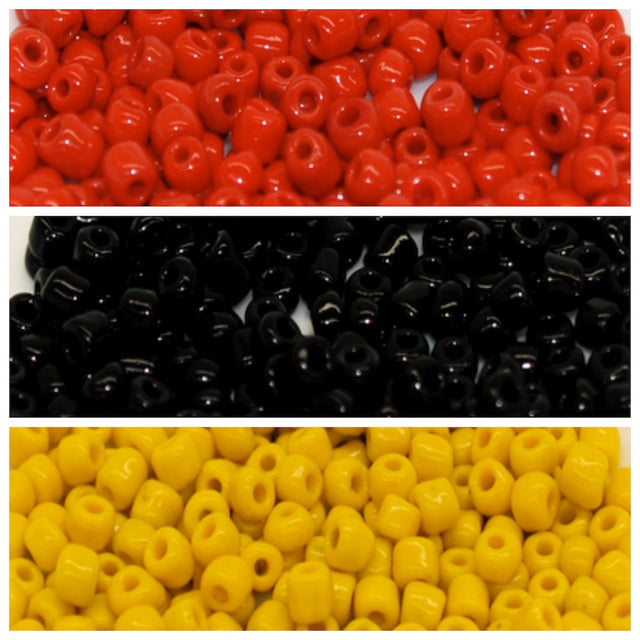 Our Aboriginal NAIDOC bead packs include the 3 colours of black, red & yellow (or gold according to stock available at the time).