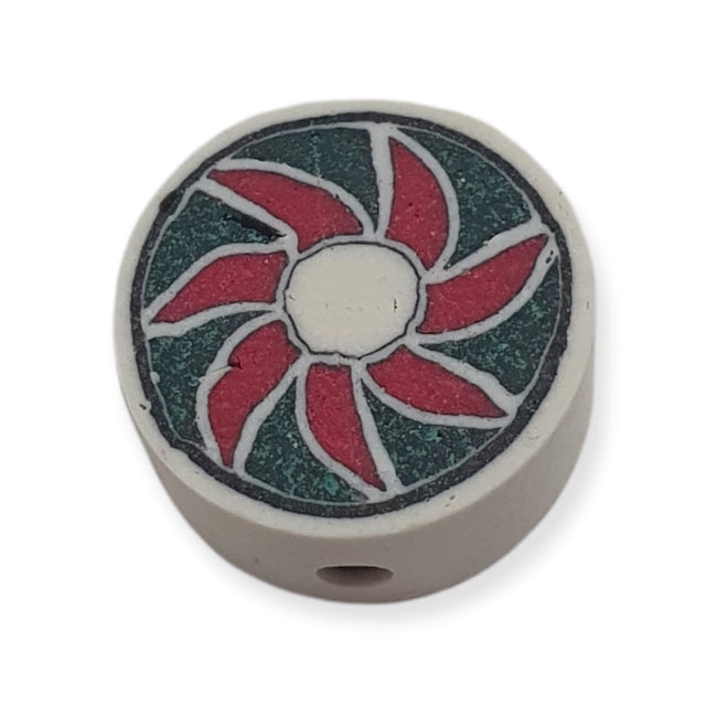 12mm Coin Fimo Beads (10) - Red/Green on White