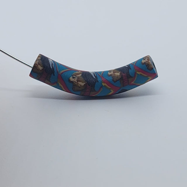 35x7mm Elbow Fimo Beads (10) - Indian Face w. Feathers