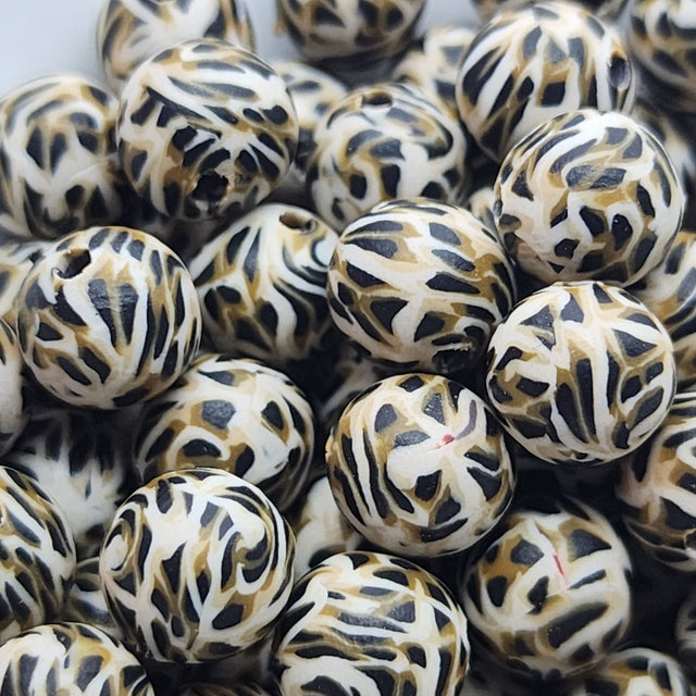 8mm Round Fimo Beads (10) - Animal Print Brown
