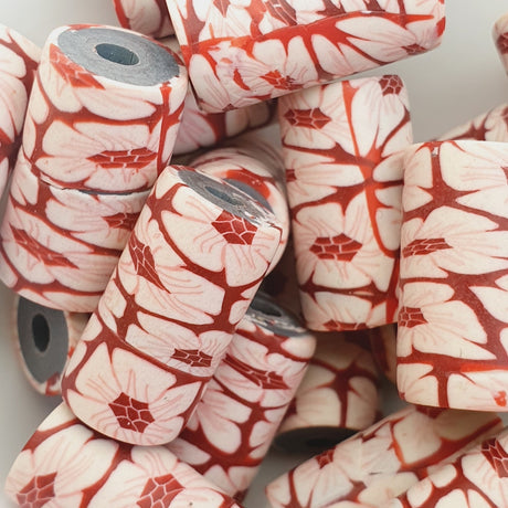 $15.75 AUDUnit price /Unavailable18mm Tube Fimo Beads (10) - White Flowers on Red