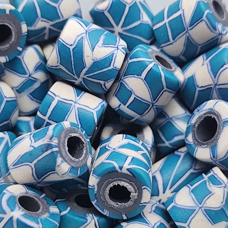 $9.90 AUDUnit price /Unavailable10mm Tube Fimo Beads (10) - Turquoise w. White Patterns