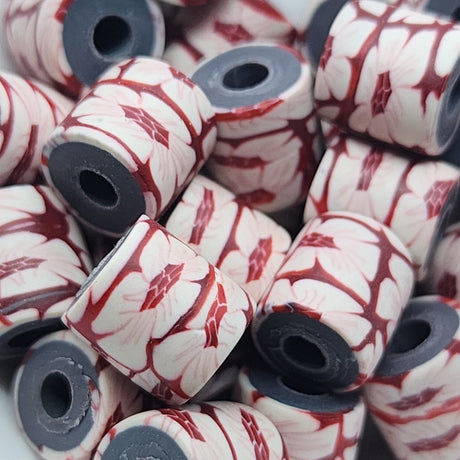 $9.90 AUDUnit price /Unavailable10mm Tube Fimo Beads (10) - White Flowers on Red