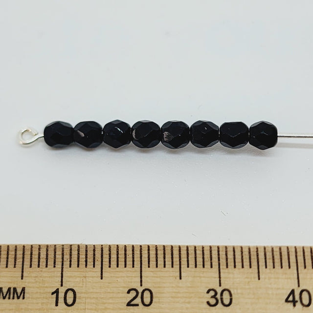 4mm Fire Polish (500) - Jet Black - Vintage Czech Glass Beads