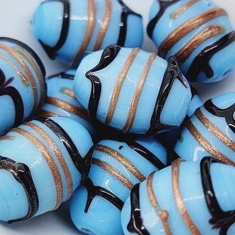 $18.00 AUDUnit price /Unavailable19x14mm Oval (10) - Light Blue w. Aventurine & Black - Glass Vintage Replica Trade Lampwork Beads