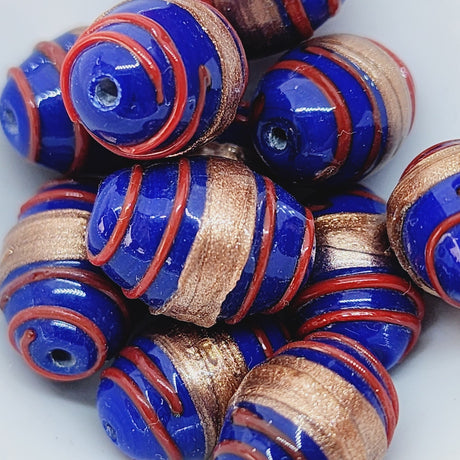 19x14mm Oval (10) - Blue Opaque w. Aventurine & Red - Glass Vintage Replica Trade Lampwork Beads