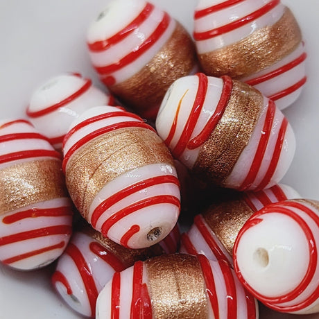 $18.00 AUDUnit price /Unavailable19x14mm Oval (10) - White Opaque w. Aventurine & Red - Glass Vintage Replica Trade Lampwork Beads