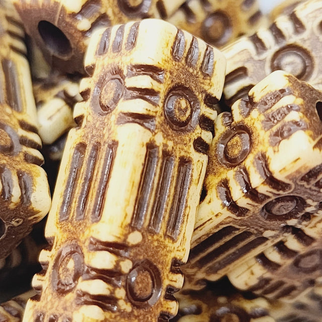 27.5x9mm Column Vintage (10) - Brown/Cream - Persian Style Vintage Beads