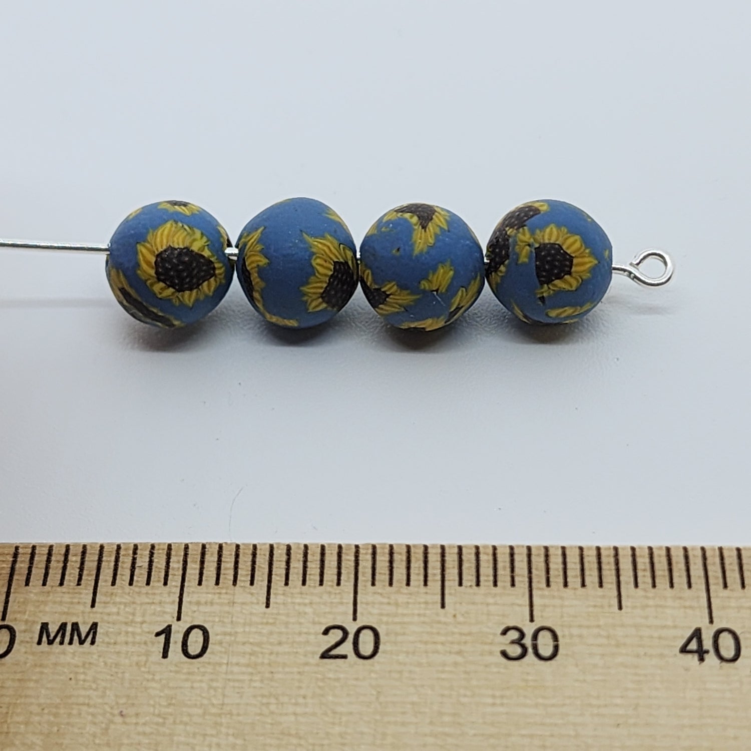 8mm Round Fimo Beads (10) - Sunflower on Blue Background
