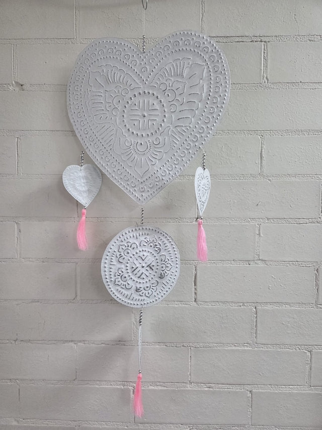 Pressed Metal Hanger Decoration - Heart - White
