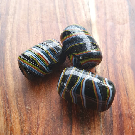 $17.00 AUDUnit price /Unavailable28mm Barrel (5) - Black w. Colours (Furnace-Wound) - Glass Vintage Replica Trade Beads