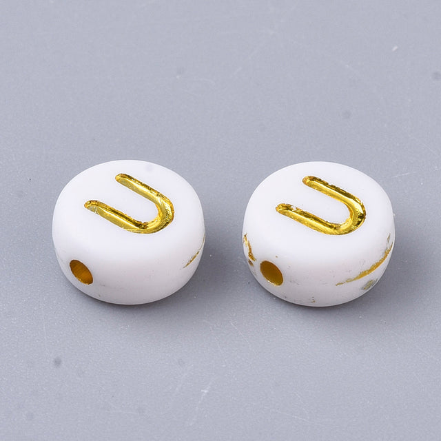 Alphabet Letter Beads (White/Gold) - U - 10 is backordered and will ship as soon as it is back in stock.