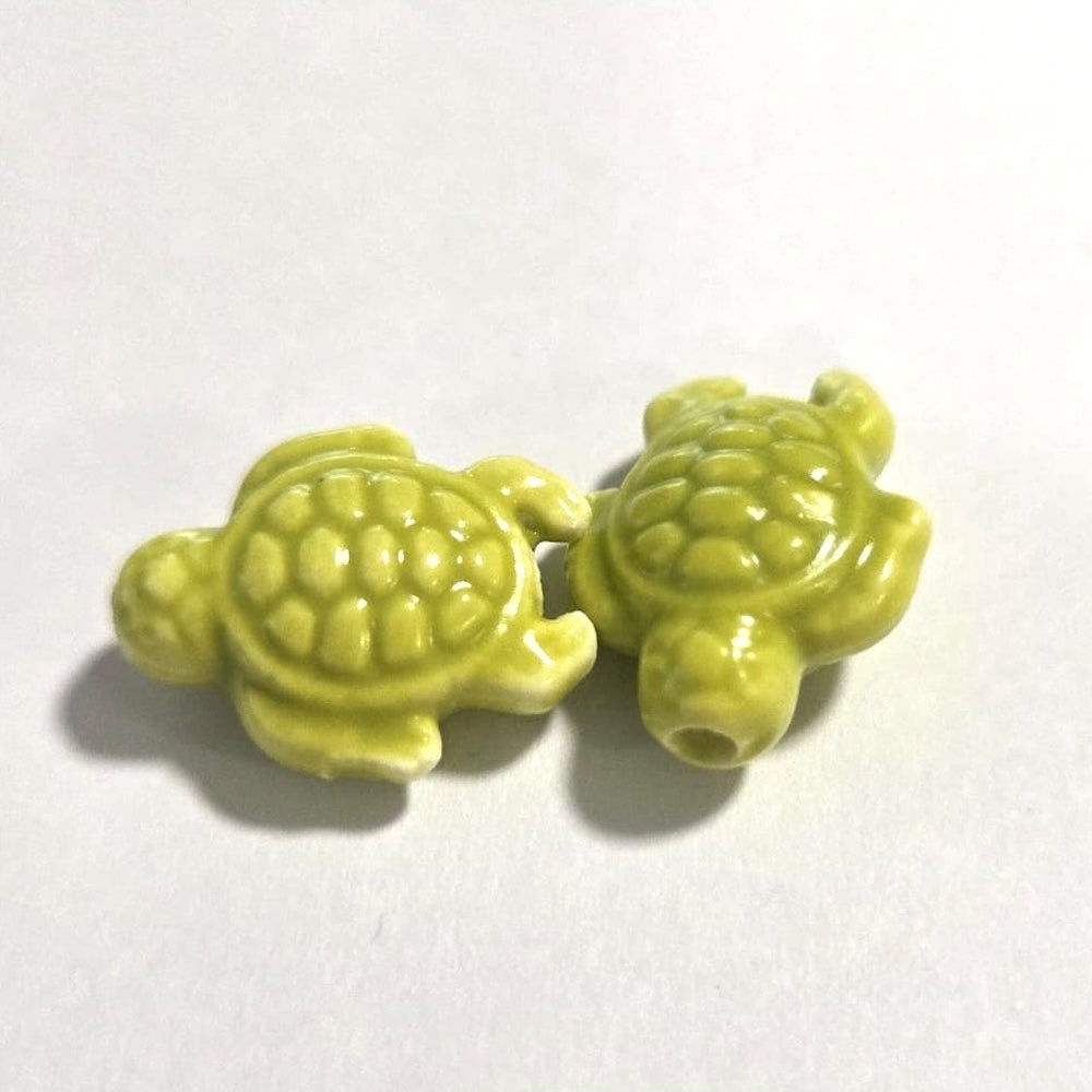 Turtle Bead (2) - Lime Green - Porcelain is backordered and will ship as soon as it is back in stock.