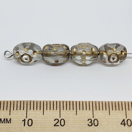 6mm Cube (25) - Clear w. Gold Stars - Vintage Czech Glass Beads