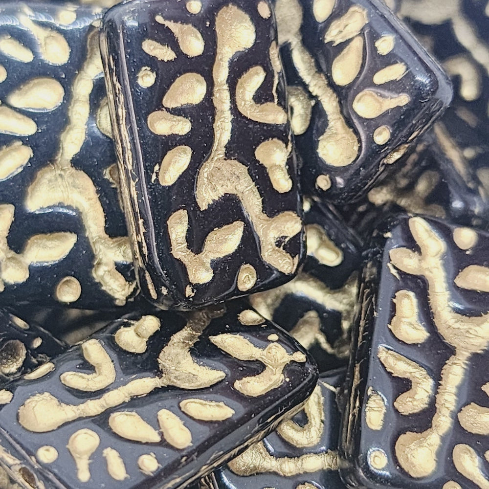 $7.50 AUDUnit price /Unavailable15x10mm Oval (10) - Black Opaque w. Gold - Vintage Czech Glass Beads