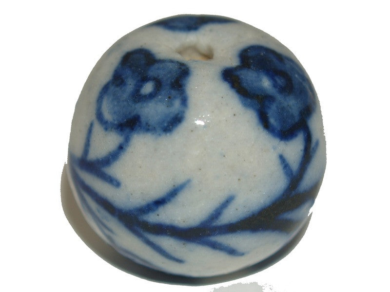 Made in the Dutch pottery style using a Delft blue these ceramic replica Trade Beads were usually made in small Indian villages.
