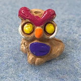 Rare Owl Bead (1) - Pink & Purple - Terracotta Clay Hand Painted Vintage Beads
