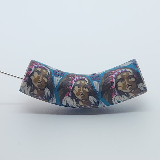 36x10mm Elbow Fimo Beads (10) - Indian Face w. Head Dress
