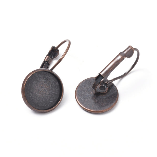 With this set of ear wires, you can put something amazing onto the tray of the ear wire, then pop the cabochon over the top. You might need to research how to stick on your chosen item. Paper, fabric, different mediums need different treatment.
