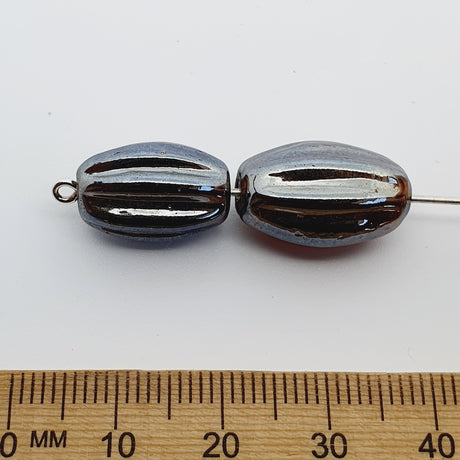 $5.00 AUDUnit price /Unavailable16x10mm Grooved Oval (25) - Transparent Dark Toffee w. Gunmetal Lustre - Indian Glass Vintage Beads