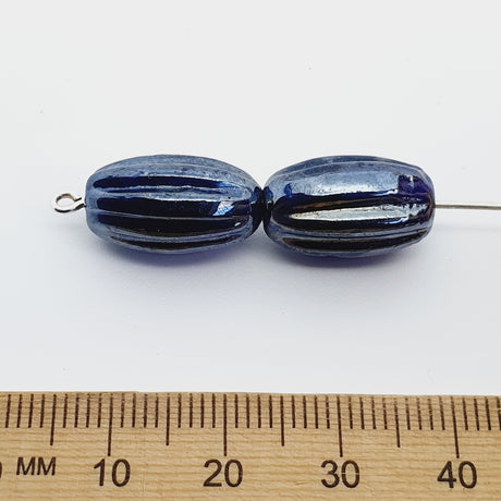 $5.00 AUDUnit price /Unavailable16x10mm Grooved Oval (25) - Transparent Blue Lustre - Indian Glass Vintage Beads