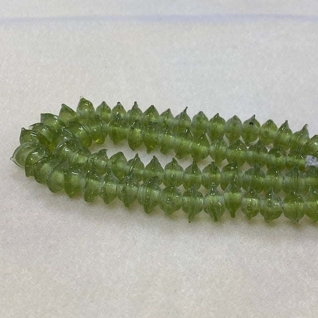 Triangle Rondelle - Peridot Green Transparent - Java Glass Lampwork Beads - (1 strand) is backordered and will ship as soon as it is back in stock.