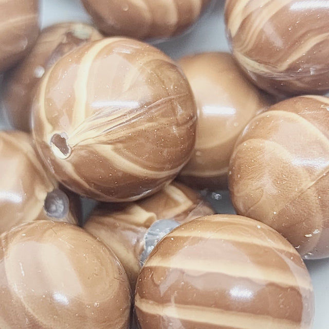 16mm Round (10) - Medium Brown - Vintage Wood Veneer Marbled Effect Beads