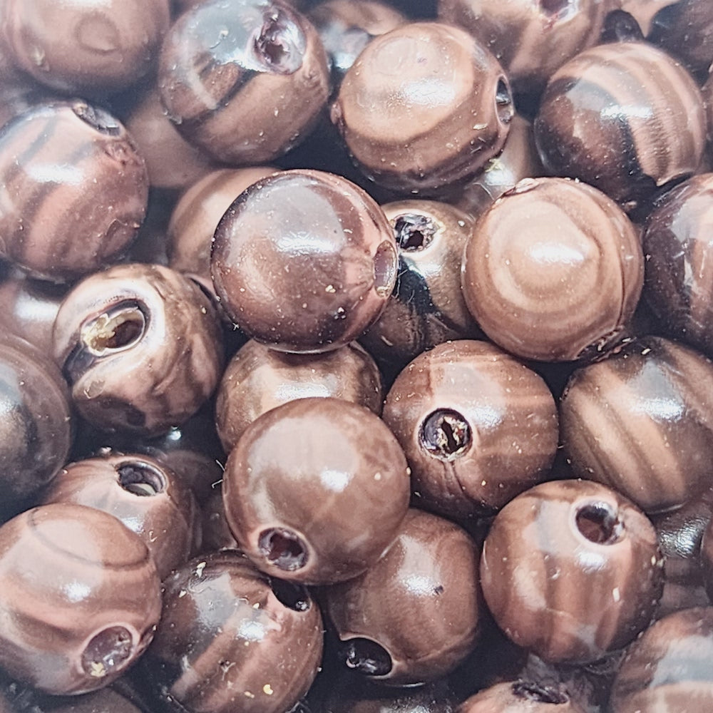 8mm Round (50) - Dark Brown - Vintage Wood Veneer Marbled Effect Beads