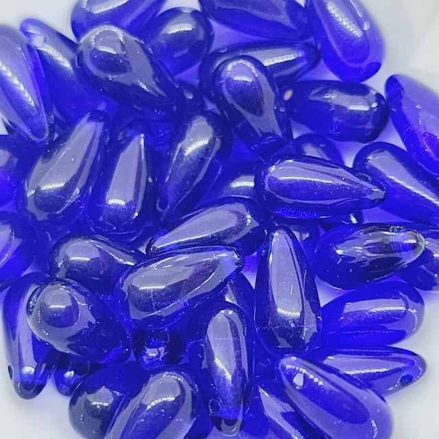 10x4mm Teardrop (100) Dark Blue Transparent - Vintage Czech Glass Beads