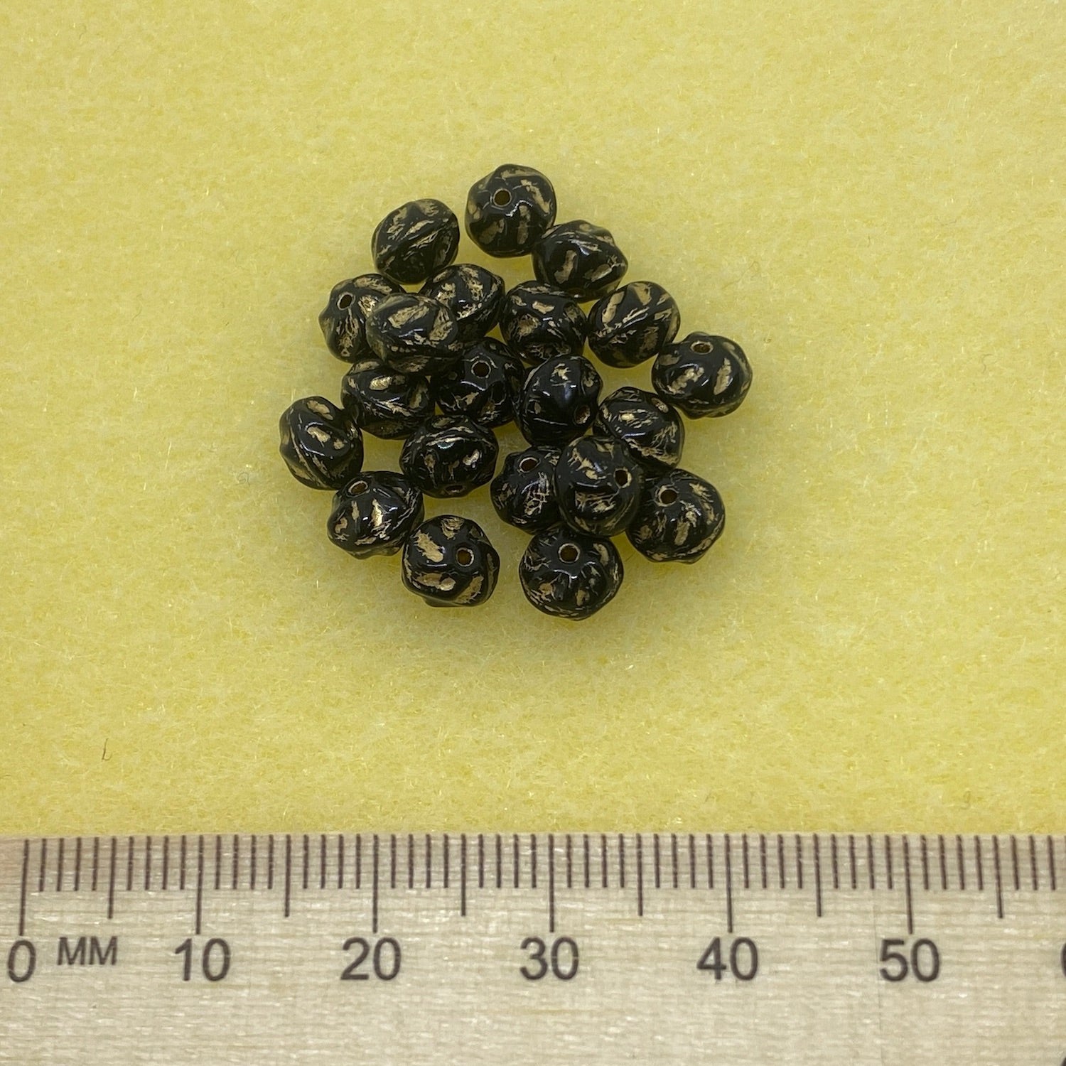 5x6mm Rondelle (25) - Black Opaque w. Gold - Vintage Czech Glass Beads