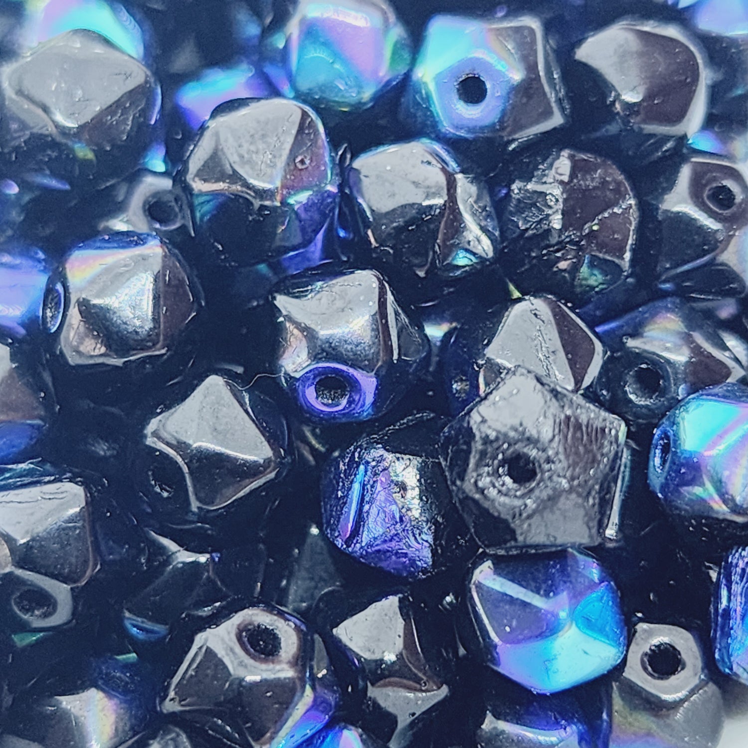 7mm Twisted Round (100) - Black AB - Vintage Czech Glass Beads