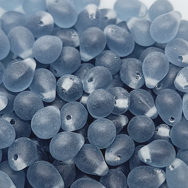 7x5mm Teardrop (25) - Indicolite Blue Frosted - Vintage Czech Glass Beads