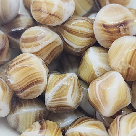 $9.00 AUDUnit price /Unavailable10mm Round 'Pinched" (10) - Opaque Caramel Stripes - Vintage Czech Glass Beads