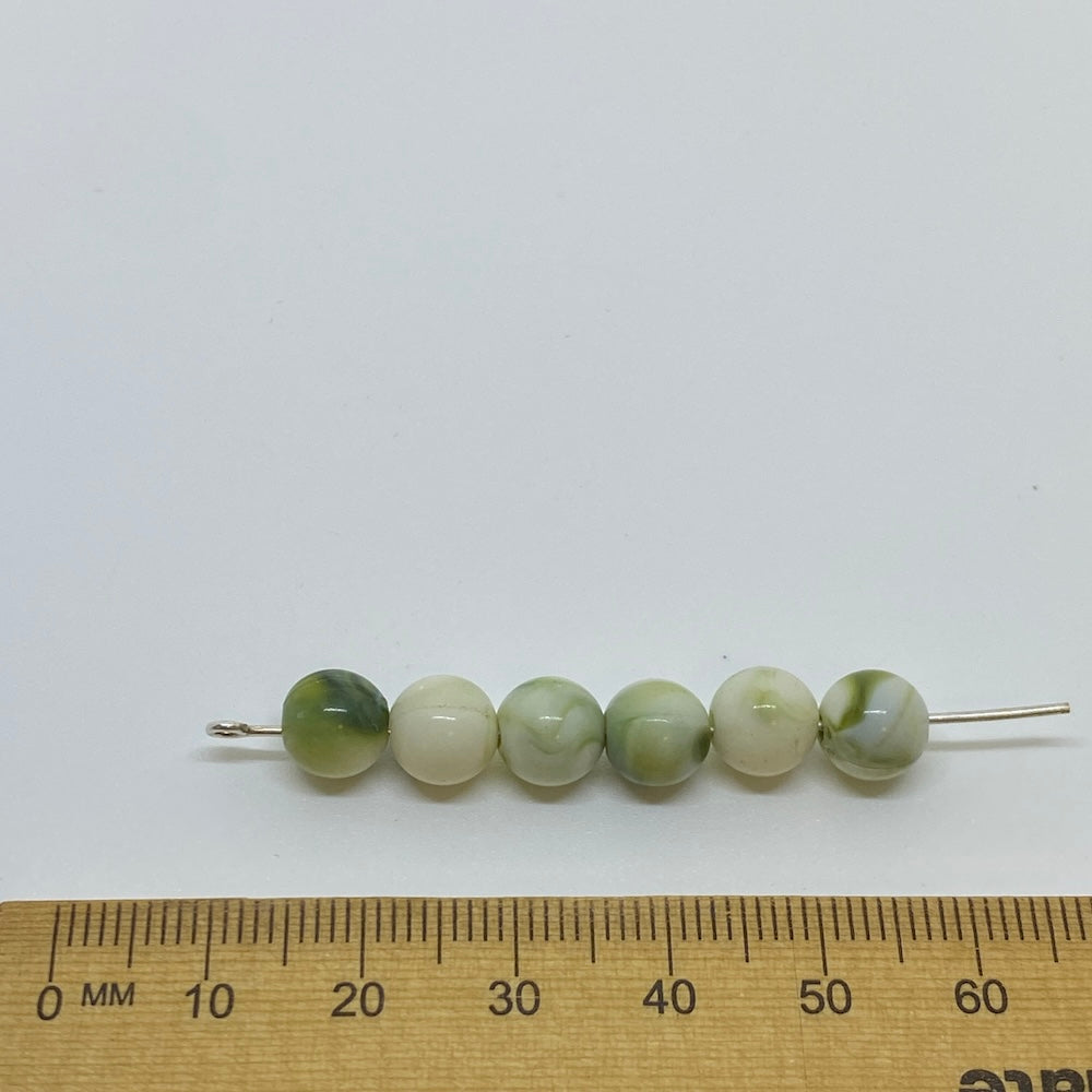 8mm Round (50) - Cream w. Sage Swirl Opaque - Vintage Lucite Beads