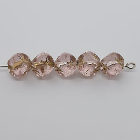 6mm Cube (25) - Pink w. Gold Stars - Vintage Czech Glass Beads