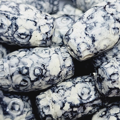 $5.00 AUDUnit price /Unavailable22x12mm Barrel (25) - White/Grey - Pottery Look Lucite Beads - Glossy