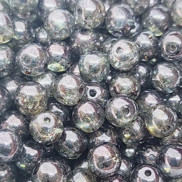 6mm Round (25) - Grey Bubble - Vintage Czech Glass Beads