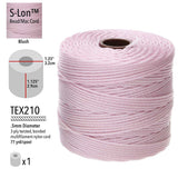 Size: S-Lon bead cord is .5 mm 3-ply twisted, bonded multifilament nylon cord.