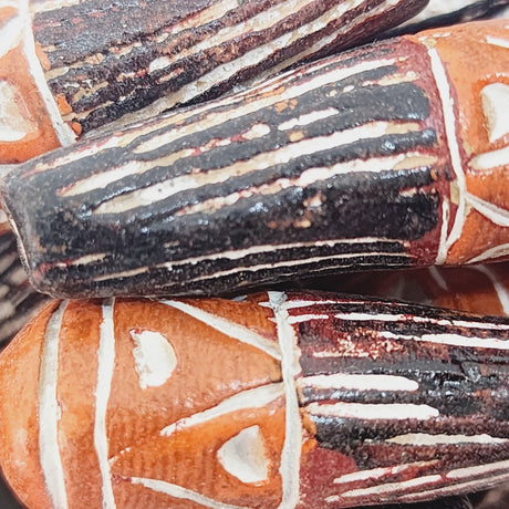$23.50 AUDUnit price /Unavailable28x12mm Bicone w. Lines & Triangles (10) - Antique Copper - Vintage Clay Beads