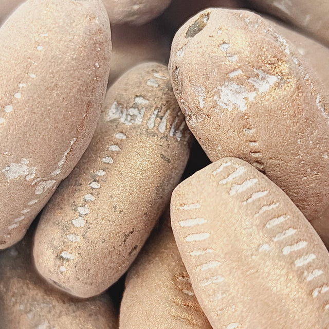 Measurements: 20~25mm long, however being handmade there is a lot of variation in the sizing and shapes. We have taken photos in front of a ruler, as well as alone, to try and show the approximate sizing of the beads.