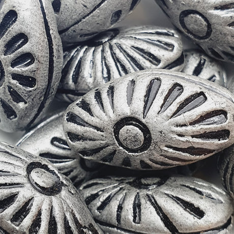 $5.00 AUDUnit price /Unavailable25x15mm Oval (5) - Antique Silver w. Black - Vintage Clay Beads