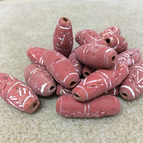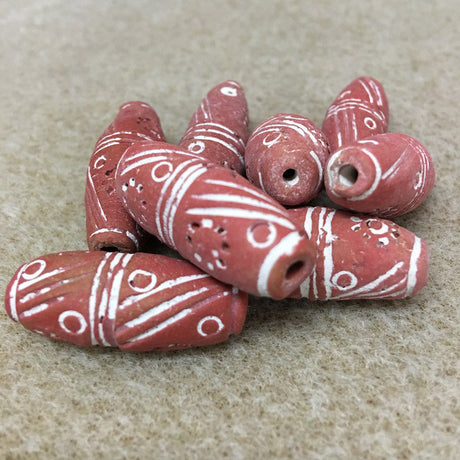 30mm Torpedo (10) - Red Terracotta w. White - Vintage Clay Beads