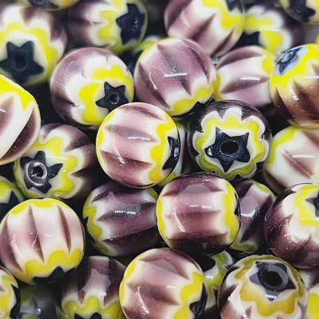 $5.00 AUDUnit price /Unavailable6mm Round (25) - Aubergine & Yellow - Vintage Chevron Glass Beads
